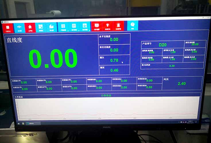測量結果的聲光報警:可設置報警的閾值,測量值超差時聲光報警;管材兩端500mm內直線度設置報警,整根鋼管直線度設置超差報警;