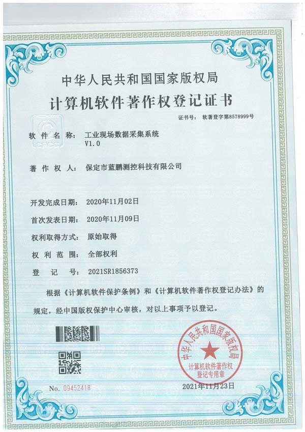 熱烈慶祝藍鵬測控,新一批專利證書申請成功。國家專利局頒發(fā)專利證書。