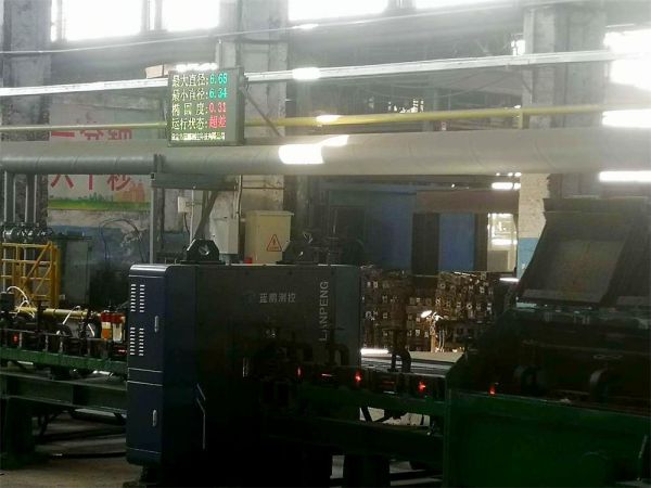 測(cè)徑儀測(cè)量的數(shù)據(jù)在終端顯示器和現(xiàn)場(chǎng)大LED屏上同步顯示。當(dāng)出現(xiàn)數(shù)據(jù)超差或設(shè)備超溫時(shí),系統(tǒng)將自動(dòng)發(fā)出聲、光報(bào)警。便于現(xiàn)場(chǎng)有關(guān)人員適時(shí)地調(diào)整軋機(jī)或孔型。