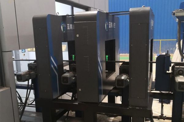 直線度測量儀安裝在優(yōu)棒分廠探傷機前,檢測待探傷棒材的直線度誤差。根據(jù)現(xiàn)場輥道尺寸,3臺位置測量儀可測量棒材每1.3m的直線度誤差。測量儀采用鋼結(jié)構(gòu)支架落地安裝,不需要基礎土建施工。