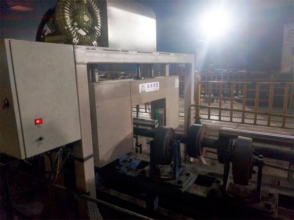 探傷線二的測(cè)徑儀安裝在托輥支架上,測(cè)徑儀的兩路測(cè)頭采用水平豎直布置。