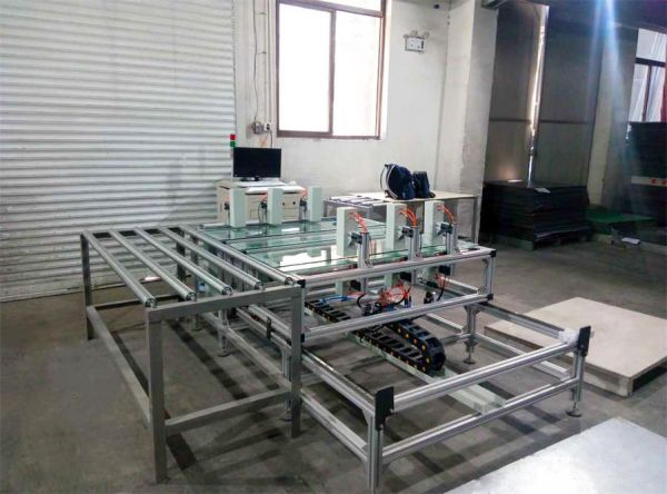 由于地板的長度和寬度規(guī)格比較多,而且檢測點距離長度方向的兩個邊緣尺寸不確定。所以,測量設(shè)備的各檢測點位置應(yīng)能夠自由調(diào)整。